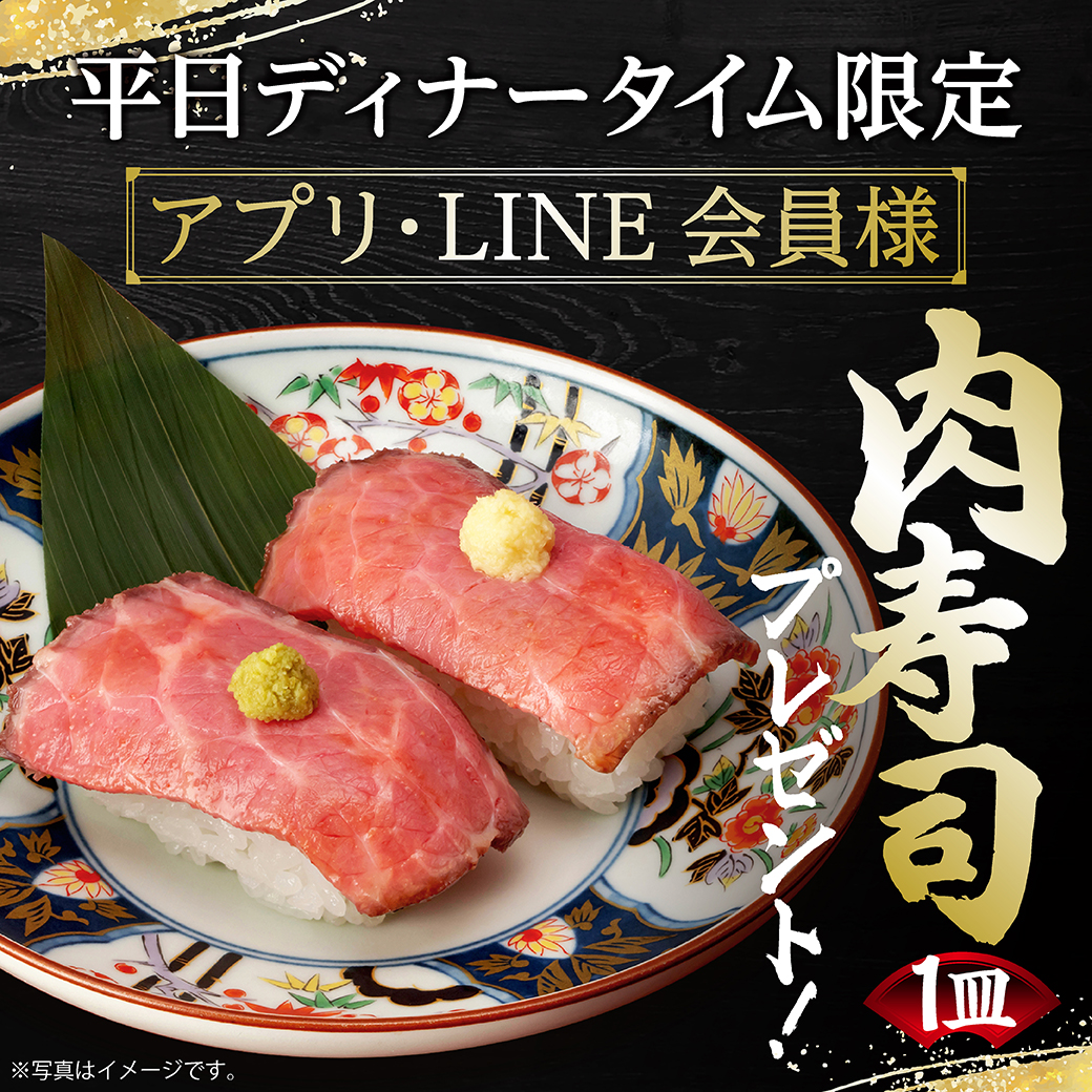 ✨公式アプリ&LINE会員様特典✨肉寿司1皿プレゼント🍣