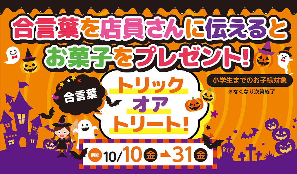 TOPNews🎃✨HAPPY HALLOWEENお子様イベント開催✨🎃 🎃✨HAPPY HALLOWEENお子様イベント開催✨🎃 2025.10.10 小学生までのお子様が対象で、合言葉「トリック オア トリート!」を店員さんに伝えると…🎁お菓子をプレゼント! ご家族でのお食事にプラスして、ちょっぴりワクワクの体験を♪ News一覧に戻る